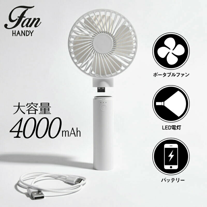 【商品名】 ハンディファン 002 / 多機能 3WAY 小型扇風機 【商品詳細】 ポイント01:4000mAhでたっぷり送風 シンプルなワンボタンで操作性抜群。